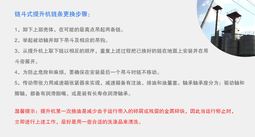 溫馨提示:提升機(jī)首次換油是減少由于運(yùn)行帶入的碎屑或殘留的金屬碎塊,因此當(dāng)運(yùn)行停止時(shí),立即進(jìn)行上述工作,是用一些合適的洗滌品來清洗。