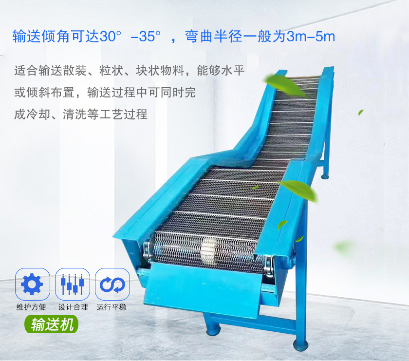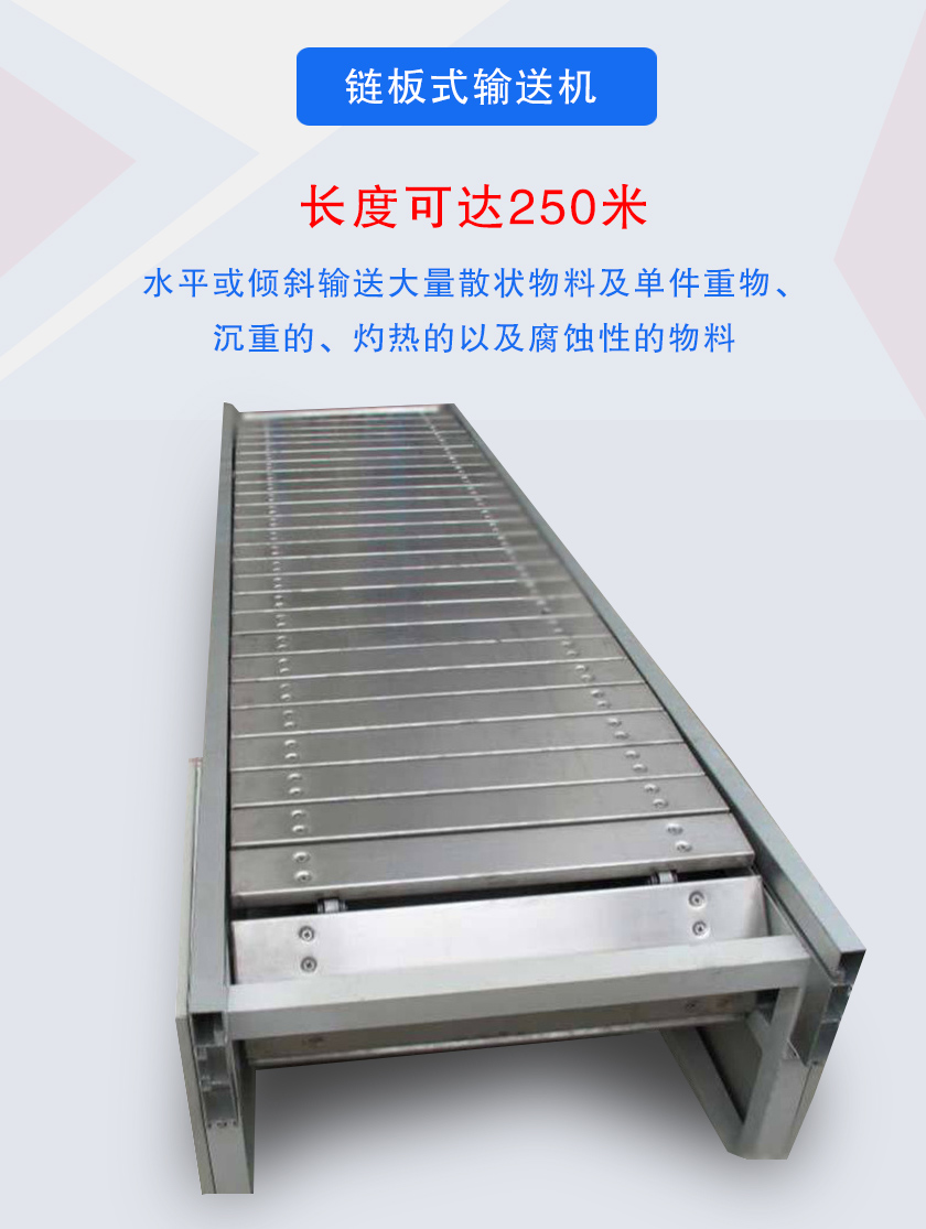 鏈板式輸送機簡稱鏈板輸送機,采用板式鏈條牽引,強度高,鏈板式輸送機輸送傾角可達30°-35°,彎曲半徑一般為3米-5米,輸送長度咔噠250米.