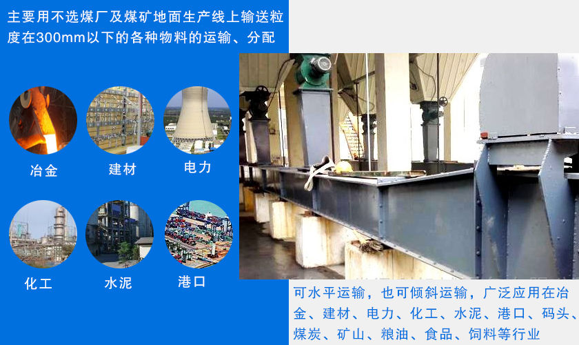 刮板鏈式輸送機主要用不選煤廠及煤礦地面生產(chǎn)線上輸送粒度在300mm以下的各種物料的運輸、分配。可水平運輸,也可傾斜運輸,廣泛應(yīng)用在冶金、建材、電力、化工、水泥、港口、碼頭、煤炭、礦山、糧油、食品、飼料等行業(yè)。