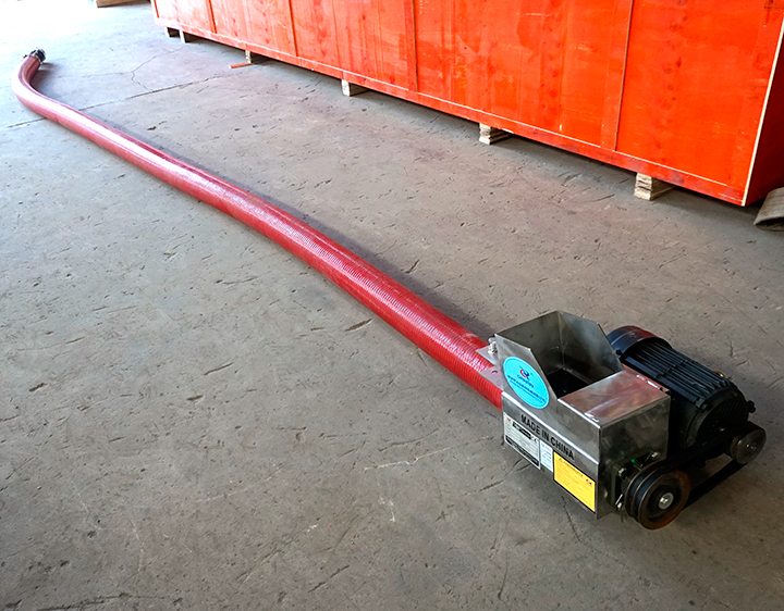 軟管無軸螺旋輸送機(jī)是專門針對(duì)農(nóng)村運(yùn)糧、裝車、倒垛、倉儲(chǔ)而設(shè)計(jì)的一種小型設(shè)備,具有體積小,重量輕,便于移動(dòng),吸糧率高,破損率低,便用場合廣泛,安全可靠等特點(diǎn),非常適合個(gè)體農(nóng)戶,糧食專業(yè)戶及農(nóng)業(yè)合作社使用。亦可以用在養(yǎng)殖場,飼料廠,食品廠,塑料廠等輸送顆粒的場合。可輸送小麥、大豆、玉米、稻谷、高粱、養(yǎng)料、樹脂、大米等顆粒(顆粒直徑3-10mm)。可水平、傾斜方式輸送。比任何運(yùn)送方式、運(yùn)送成本都低。它改變傳統(tǒng)運(yùn)送方式,解放勞動(dòng)力,方便適用。