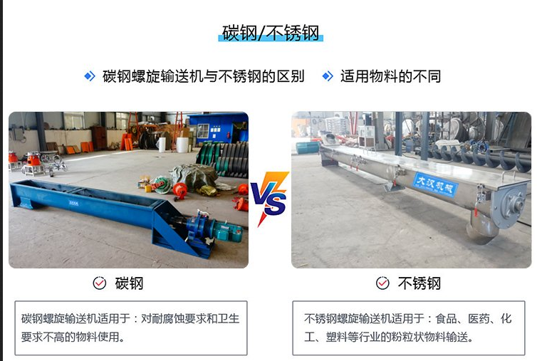 在原材料上,304不銹鋼會比Q235碳鋼偏貴,所以不銹鋼無軸螺旋輸送機的價格會高于碳鋼材質的。