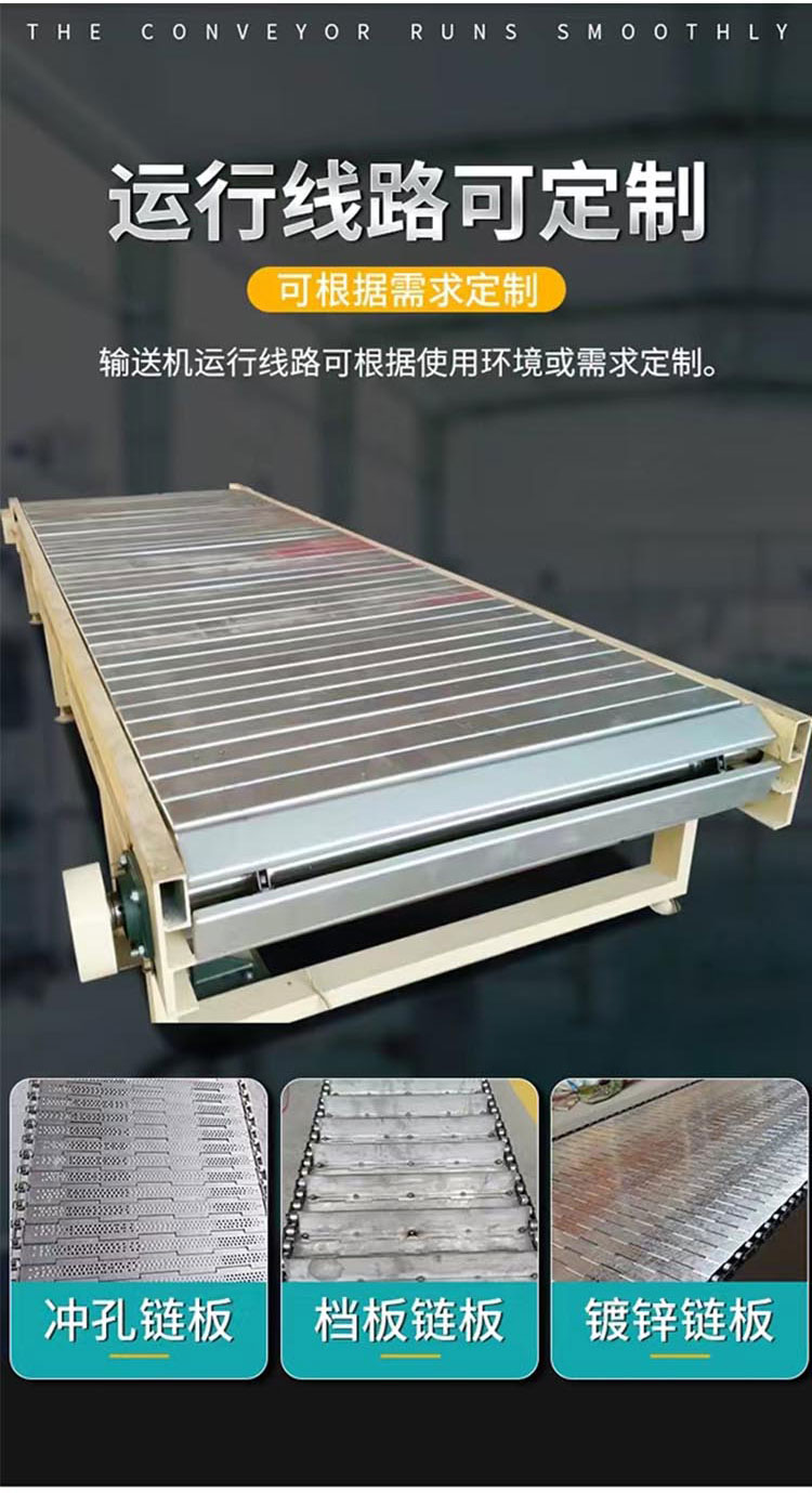 以上是鏈板輸送機(jī)工作原理的介紹,鏈板輸送機(jī)可確保在很長(zhǎng)的距離內(nèi)提取和輸送散裝材料,該設(shè)備可以水平、傾斜、垂直輸送,在食品、醫(yī)藥、金屬、礦物、肥料等行業(yè)有廣泛的應(yīng)用。