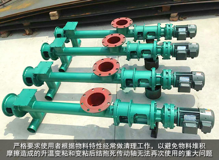 螺旋輸送機因整機密封設計,所以對這種物料的輸送會在進料端的螺旋管下部開一個檢視工作口,所以這就要求了我們在日常使用前后,一定要進行清理工作,并且嚴格要求使用者根據物料特性經常做清理工作,以避免物料堆積摩擦造成的升溫變粘和變粘后結抱死傳動軸無法再次使用的重大問題!