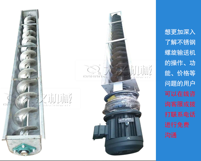 以上就是大漢小編為您介紹的輸送葡萄干所用的不銹鋼螺旋輸送機,想更加深入了解不銹鋼螺旋輸送機的操作、功能、價格等問題的用戶可以在線咨詢客服或撥打聯系電話進行免費溝通。