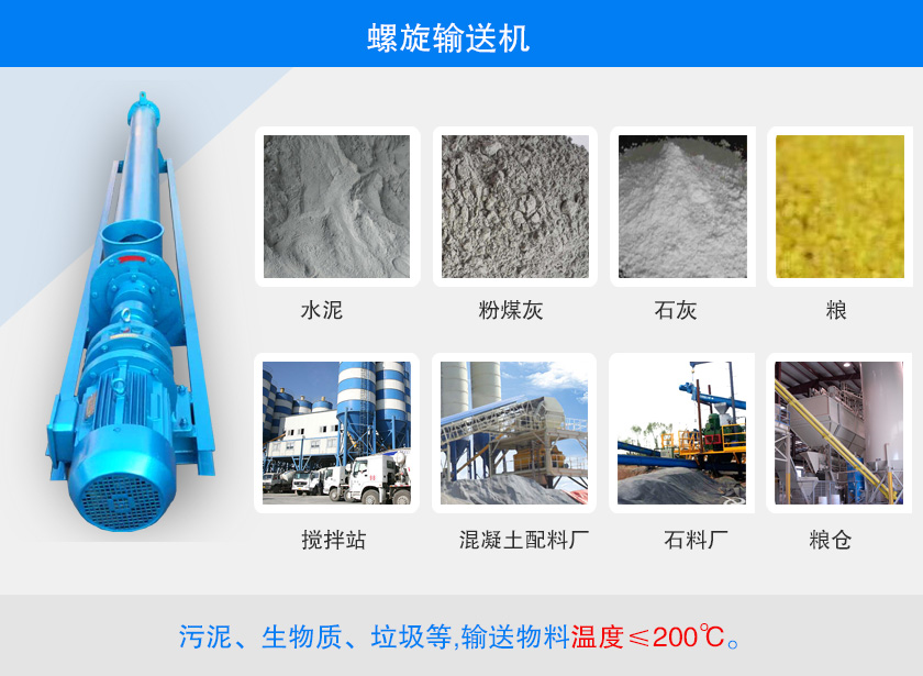 螺旋輸送機(jī)可以輸送可以水平,傾斜或垂直輸送粉狀,顆粒狀及小塊狀物料,同時(shí)具備混合、攪拌、冷卻功能,有軸螺旋輸送機(jī)可以無(wú)粘性的干粉物料和小顆粒物料.(例如:水泥、粉煤灰、石灰、糧等),無(wú)軸螺旋輸送機(jī)適合輸送機(jī)由粘性的和易纏繞的物料。(例如:污泥、生物質(zhì)、垃圾等,輸送物料溫度≤200℃。螺旋輸送機(jī)適用于攪拌站,水泥廠(chǎng)、混凝土配料廠(chǎng),石料廠(chǎng),糧倉(cāng)等場(chǎng)合。