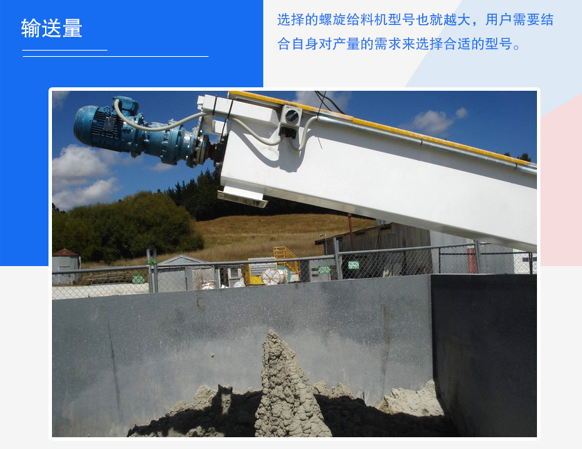 輸送量大小將直接決定設(shè)備型號(hào)大小的選擇,用戶(hù)所需產(chǎn)量越大,選擇的螺旋給料機(jī)型號(hào)也就越大,用戶(hù)需要結(jié)合自身對(duì)產(chǎn)量的需求來(lái)選擇合適的型號(hào)。